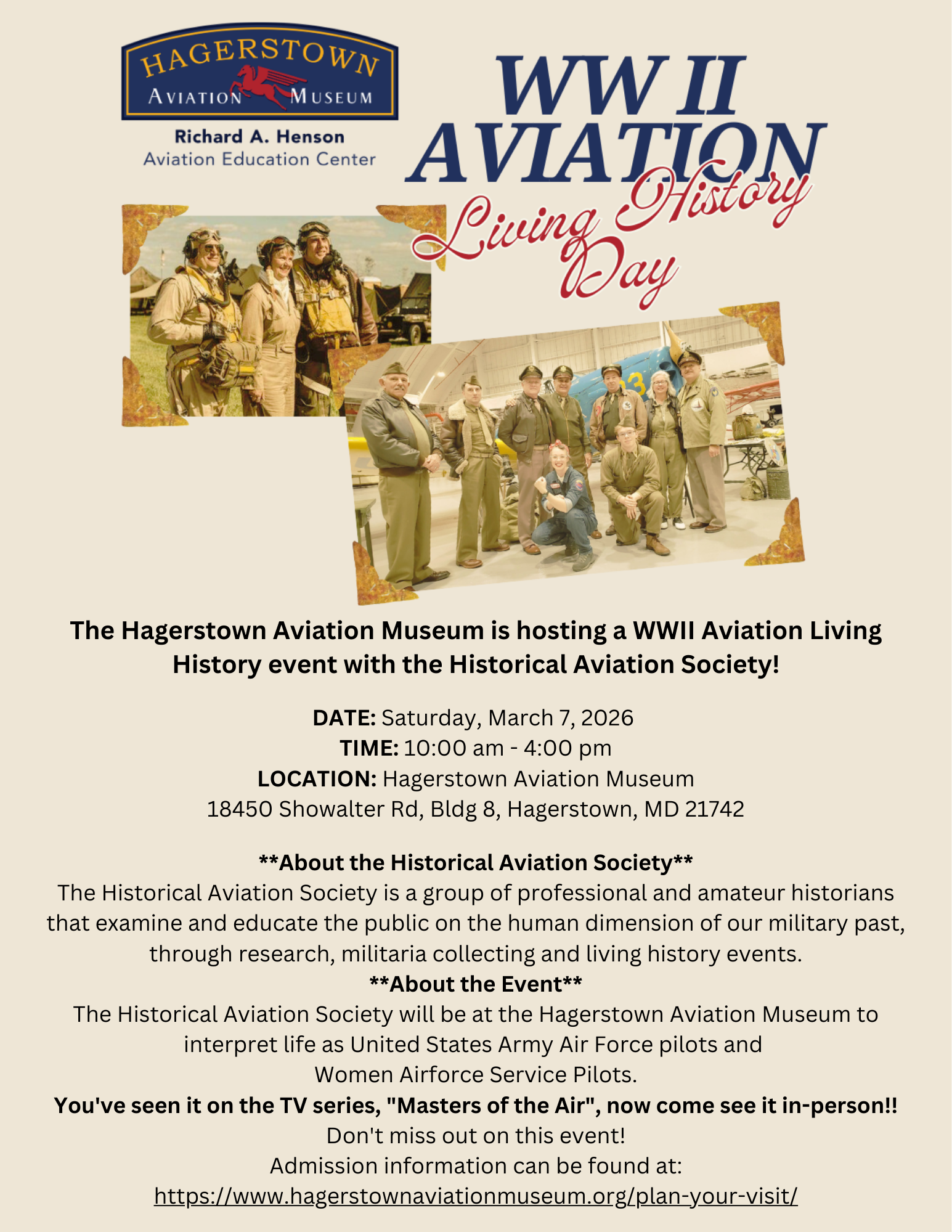 The Hagerstown Aviation Museum is hosting a WWII Aviation Living History event with the Historical Aviation Society!